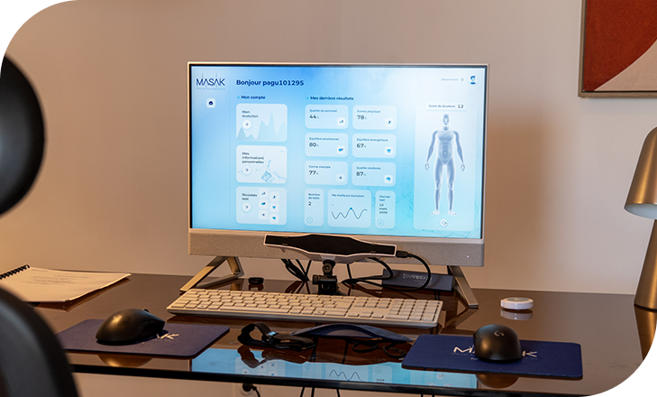 MASAK est une solution d’évaluation innovante conçue pour mesurer de façon objective et complète l’état mental, physique et physiologique d’une personne. Plus qu’un simple questionnaire, c’est un outil scientifique et digital permettant de quantifier des paramètres clés comme la fatigue mentale, le stress, les niveaux de douleur ou encore la qualité du sommeil — le tout en moins de 20 minutes.